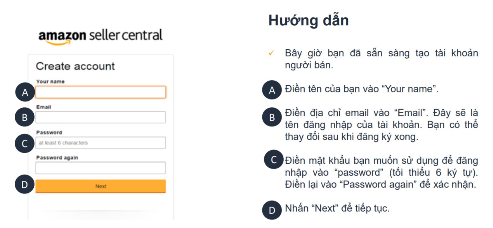 Sau khi đã xác định được mặt hàng kinh doanh tiềm năng, bước tiếp theo chính là tạo lập gian hàng trên “khu chợ toàn cầu” Amazon. Trung tâm bán hàng Amazon (Amazon Seller Central) sẽ hướng dẫn chi tiết từng bước trong quá trình đăng ký.