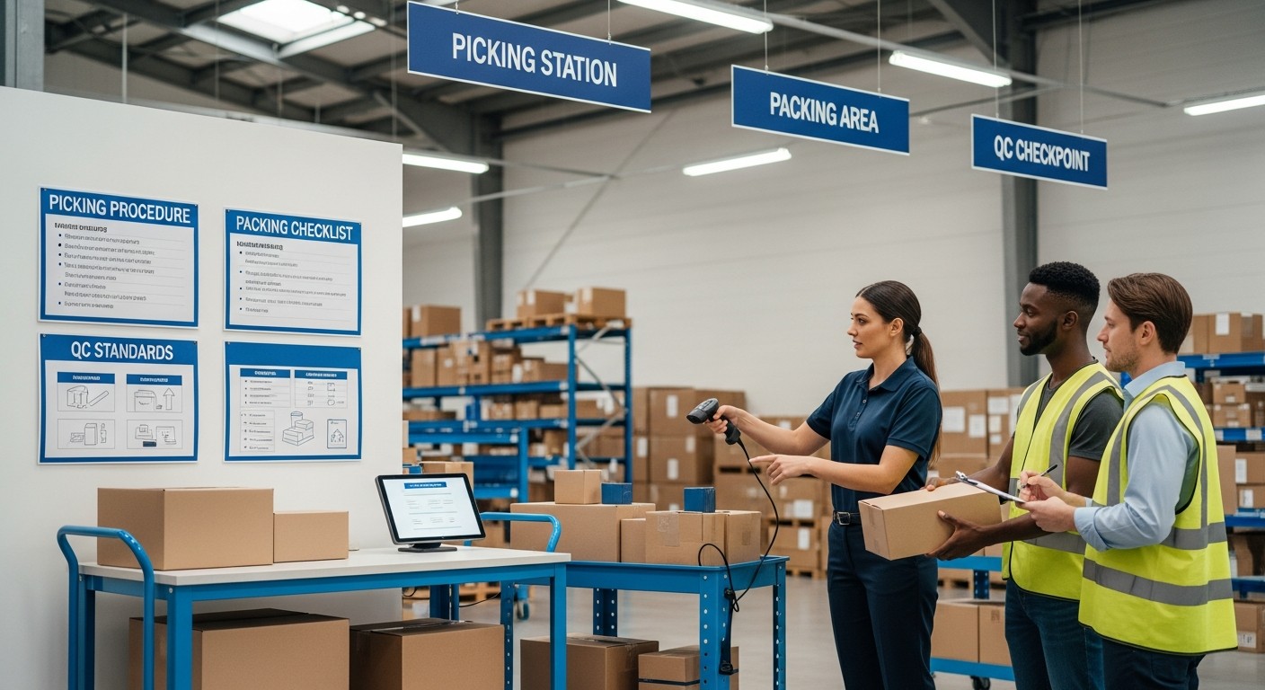 Một quy trình chuẩn cần tối thiểu 1 nhân sự kiểm hàng cho mỗi 3–4 nhân sự nhặt hàng.