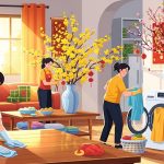 Vừa đẩy cửa bước vào, anh cất tiếng: